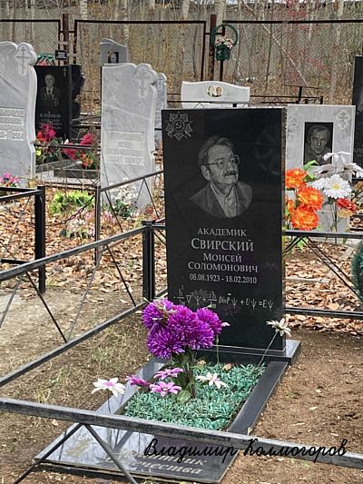 СВИРСКИЙ Моисей Соломонович (8.08.1923-18.02.2010) – советский и российский физик-теоретик. Р. в г. Паневежис (Литва). Не успел получить школьный аттестат из-за начала войны. В марте 1942- декабре 1944 участвовал в боевых действиях на Центральном, Белорусском и Прибалтийском фронтах в составе роты химзащиты 16-й Литовской стрелковой дивизии. В декабре 1944 в районе города Либава в Прибалтике получил ранение, в результате которого потерял правую ногу. В госпитале сдал экзамены и получил аттестат о среднем образовании. В 1945 поступил на физический ф-т МГУ, который окончил с отличием в 1950. С 1950 работал в Челябинском педагогическом ин-те, позже преобразованном в университет. Канд. физ.-мат. наук (1958, «Некоторые вопросы квантовой многоэлектронной теории металлов при низких температурах», науч. рук. С.В. Вонсовский). Д-р физ.-мат. наук (1966, «Вопросы квантовой теории обменного воздействия и сверхпроводимости»). В 1955-98 был заведующим кафедрой теоретической физики ЧГПИ – ЧГПУ. С 1998 был профессором, а с 2002 – профессором-консультантом. Академик РАЕН (1995).