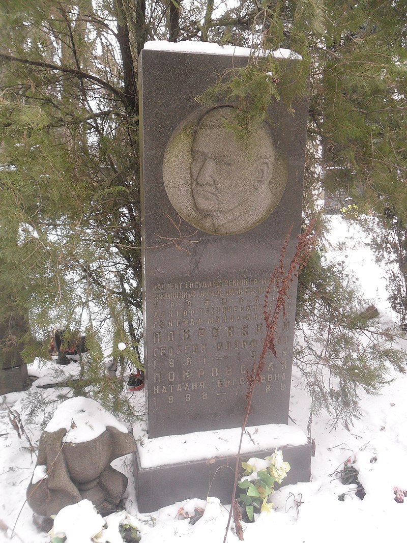 ПОКРОВСКИЙ Георгий Иосифович (13.04.1901 - 15.01.1979) – д.т.н., профессор, заслуженный деятель науки и техники РСФСР, генерал-майор инженерно-технической службы. Р. в Киеве. Окончил Московский университет народного хозяйства (1923), с 1925 на преподавательской работе в Московском высшем техническом училище, с 1929 - в Московском инженерно-строительном институте, с 1932 профессор в Военно-инженерной академии, начальник каф. физики, с 1944 - профессор в Военно-воздушной инженерной академии им. Н. Е. Жуковского. Сын правоведа, историка римского права И.А. Покровского.