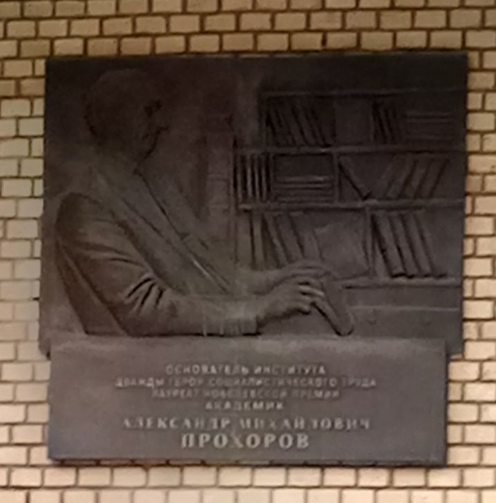 ПРОХОРОВ Александр Михайлович (11.VII.1916 - 08.I.2002) — советский физик, один из основоположников квантовой электроники, академик (1966; чл.-кор. 1960). Р. в Атертоне (Австралия). Окончил Ленинградский ун-т (1939). В 1946 — 82 работал в Физическом ин-те АН СССР (с 1954 — зав. лабораторией колебаний, с 1968 — зам. директора), с 1982 — директор Ин-та общей физики АН СССР. С 1959 — также профессор Московского ун-та и с 1971 — зав. кафедрой Московского физико-технического ин-та.