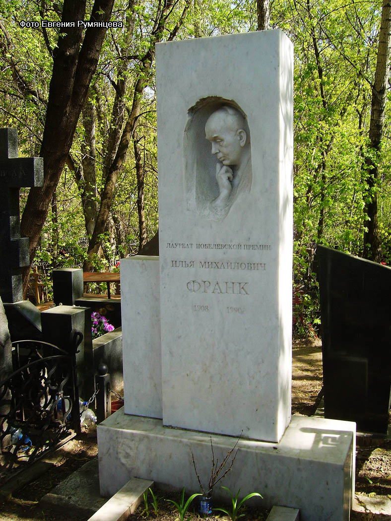 ФРАНК Илья Михайлович (23.10.1908 - 22.06.1990) — советский физик, академик (1968; чл.-кор. 1946). Р. в Петербурге. Сын математика М.Л. Франка. Окончил Московский ун-т (1930). В 1930-34 работал в Государственном оптическом ин-те, в 1934-70 - в Физическом ин-те АН СССР (с 1941 — зав. отделом, с 1947 — зав. лабораторией). С 1957 — директор Лабораюрии нейтронной физики Объединенного ин-та ядерных исследований в Дубне и с 1971 — зав. лабораторией Ин-та ядерных исследований АН СССР. С 1940 — также профессор Московского ун-та.