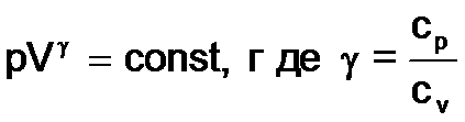 - показатель адиабаты, а сp и сv теплоемкости при постоянном давлении и объеме соответственно.