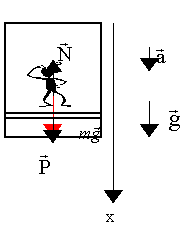 P=m(g-a) - вес тела в случае, когда вектор ускорения совпадает по направлению с вектором ускорения свободного падения. В этом случае сила веса по модулю меньше силы тяжести.