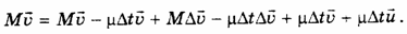 Слагаемым можно пренебречь по сравнению с остальными. После приведения подобных членов будем иметь: или - уравнение Мещерского для движения тела переменной массы (1897 г.). Обозначим . Если учесть действие не только реактивной, но и внешней силы, то закон движения для реактивного движения будет выглядеть следующим образом: .