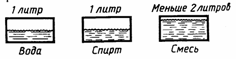При смешивании различных жидкостей объем смеси меньше суммы объемов отдельных жидкостей.