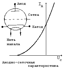 Регулируя потенциал между катодом и сеткой можно регулировать число электронов в анодной цепи. Главная характеристика - крутизна