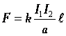 где k — коэффициент пропорциональности. Подставляя эту формулу в уравнение для силы взаимодействия двух проводников с током, получим F=B .I.ℓ.