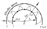 R=υ.Δt по направлению луча. Огибающая этих элементарных волн (линия 2) определяет новое положение волнового фронта. Так ведут себя волны на поверхности воды: имеют форму окружностей. Используя рассмотренный принцип, можно объяснить отражение, дифракцию и другие явления.
