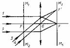 - Луч, параллельный побочной оптической оси, проходит через побочный фокус (точку на побочной оптической оси).