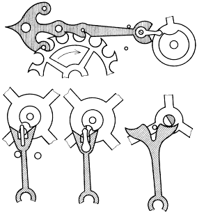 До сих пор мы в отношении свободных балансовых анкерных механизмов рассматривали лишь стопорные и анкерные системы. Совершенно логично, что некоторые часовщики изыскивали такие механизмы, у которых независимо колеблющийся осциллятор приводился в движение таким спусковым механизмом, который объединял бы элементы обеих этих или еще и других систем.