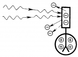 2. Ультрафиолетовые лучи, проходящие через сетчатый положительныйэлектрод, попадают на отрицательно заряженную цинковую пластину и выбивают из нее электроны, которые устремляются к сетке, создавая фототек, регистрируемый чувствительным гальванометром.