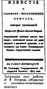 Если на стеклянную плитку или на скамеечку со стеклянными ножками будут положены два или три древесных угля, способные для произведения светоносных явлений посредством гальвани-вольтовской жидкости, и если потом металлическими изолированными направлятелями (directores), сообщенными с обоими полюсами огромной батареи, приближать оные один к другому на расстояние от одной до трех линий, то является между ними весьма яркий белого цвета свет или пламя, от которого оные угли скорее или медлительнее загораются и от которого темный покой довольно ясно освещен быть может.
