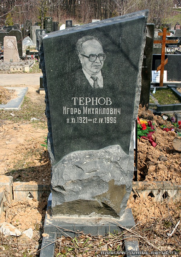 ТЕРНОВ Игорь Михайлович (11.XI.1921-12.IV.1996) — советский и российский физик-теоретик. Р. в Москве. Окончил физический факультет МГУ им. М.В. Ломоносова (1951). Доктор физико-математических наук, профессор (1962). В 1954 защитил кандидатскую диссертацию «К развитию теории движения быстрых элементарных частиц с учетом эффектов излучения» под руководством проф.