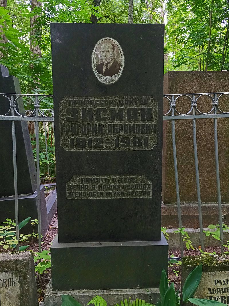 ЗИСМАН Гирш Абрамович (26.XI.1912–23.XI.1981) – советский физик. Р. в Полтаве. Семья в 1928 переехала в Ленинград. С отличием окончил среднюю школу, после чего несколько лет работал слесарем на заводе, для выработки необходимого в то время рабочего стажа для поступления в вуз. В 1932 поступил и в 1938 с отличием окончил физический ф-т ЛГУ, оставшись аспирантом кафедры теоретической физики. Ученик Я.И. Френкеля. С 1942 – канд. физ.-мат. наук («Теория античастиц»). С 1946 – ст. науч. сотрудник по специальности «теоретическая физика». С 1968 – д-р физ.-мат. наук. Работал в ЛГПИ им. Герцена на кафедре теоретической физики, с 1969 – профессор.