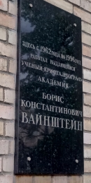 ВАЙНШТЕЙН Борис Константинович (10.07.1921 - 28.10.1996 ) — советский физик-кристаллограф, академик (1976, чл.-кор. 1962). Р. в Москве Окончил Московский ун-т (1945) и Ин-т стали (1947). Канд. физ.-мат. наук (1948, "Электронографическое определение структур галогенидов бария"). Д-р физ.-мат. наук (1955, "Структурная электронография"). С 1949 работает в Ин-те кристаллографии АН СССР (с 1958 — зав. лабораторией, с 1962 — директор).