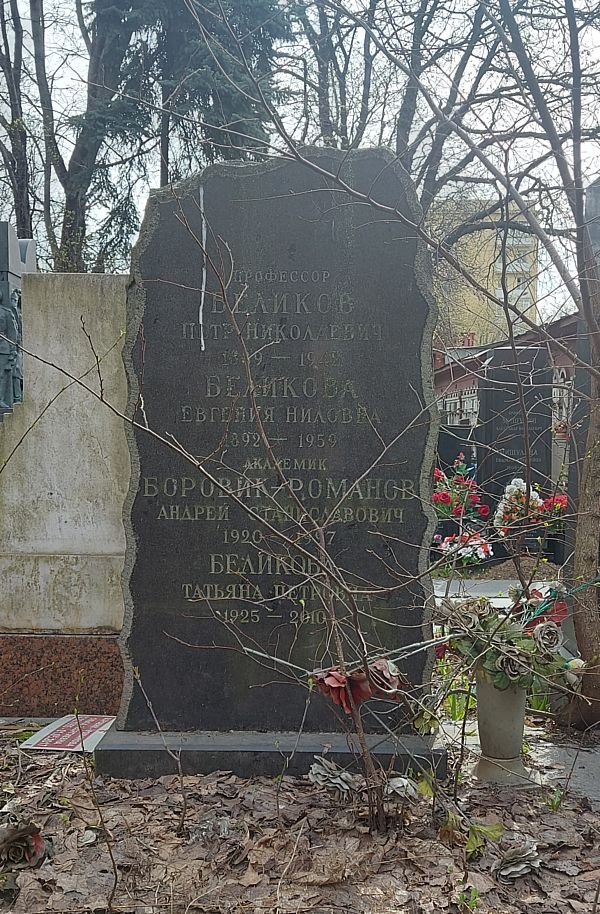 БЕЛИКОВ Пётр Николаевич (1889 – 25.12.1942) – советский физик. Р. в г. Холм (Новгородская обл.) В 1908 окончил 2-ю Московскую гимназию. В 1913 окончил физико-математический ф-т Московского университета. Студентом работал в лаборатории П.Н. Лебедева. В 1914 мобилизован для участия в военных действиях. Окончил военную электротехническую школу. На фронте был начальником полевой радиостанции 1-го Сибирского корпуса. После Октябрьской революции был председателем корпусного съезда. Демобилизован в 1918, после чего вернулся в Московский университет, затем работал в Институте физики и биофизики у П.П. Лазарева, а также в Высшей школе военной маскировки, в Институте связи, с 1920 – в МВТУ (с 1925 – доцент, с 1927 – профессор). С 1930 – зав. кафедрой физики и профессор Московского энергетического ин-та. Также в 1926-39 – проф. 2-го Московского гос. Ун-та, в 1936-39 – проф. и зав. кафедрой физики физического ф-та 1-го МГУ. В 1931-34 – консультатнт и научн. рук. в научно-исслед. кинофотоинституте, затем в НИИ связи. С 1939 – председатель экспертной комиссии по физике ВАК.
