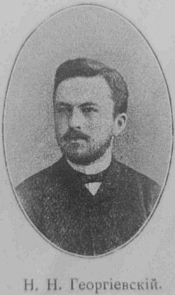 ГЕОРГИЕВСКИЙ Николай Николаевич (6.05.1864-1941?) – российский физик. Брат А.Н. Георгиевского. Окончил Петербургский университет. Ассистент кафедры физики в Императорской Военно-медицинской академии (у проф. Н.Г. Егорова). Ассистент А.С. Попова в Минных классах в Кронштадте (1889-94). В 1907-17 – преподаватель Петроградских технологического и политехнического институтов, Императорского женского педагогического института, секретарь Постоянного комитета Всероссийского электротехнического съезда и Императорского Русского технического общества, редактор журнала «Записки Императорского Русского технического общества». В 1917 – статский советник. В 1924–41 – профессор Ленинградского технологического института им. Ленсовета. Преподавал в Ленинградском ин-те железнодорожного транспорта, в Электротехническом ин-те. В 1918-23 – главный редактор ЖРФХО.