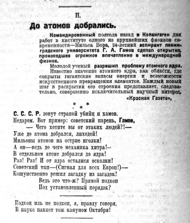 Г. Горелик. "Вот пример: советский парень Гамов" /"Троицкий вариант" 27.02.2024 / № 398 / с. 6–8