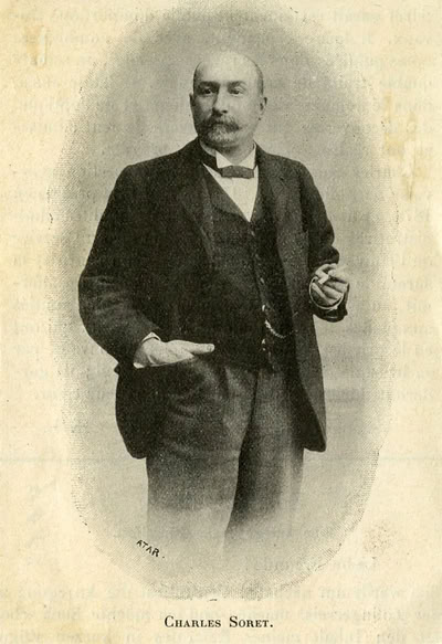 СОРЕ Шарль (Soret Charles) (23.09.1854 – 4.04.1904) – швейцарский физик и химик. Р. в Женеве, Швейцария. Сын Ж.-Л. Соре. Окончил колледж искусств в Женеве (1872). В 1874 получил степень по математике. Затем учился на факультете наук в Сорбонне, где в 1876 получил степень магистра по физике. Работал на кафедре кристаллографии и минералогии Женевского университета (1879 – лектор, 1881 – профессор). С 1898 – ректор Женевского университета. Умер от желудочно-кишечной инфекции через несколько дней после проведённой операции.