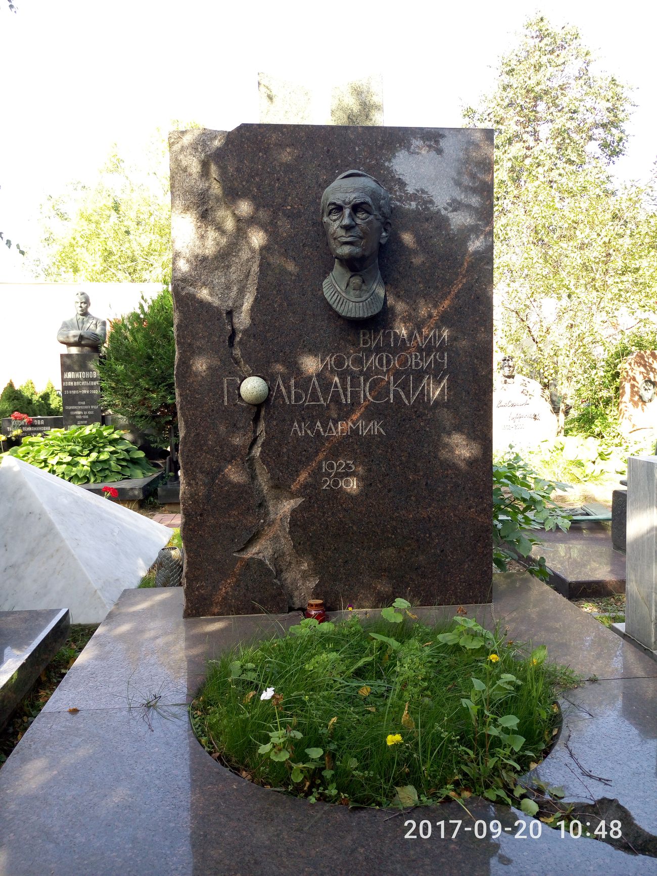 ГОЛЬДАНСКИЙ Виталий Иосифович (18.06.1923 - 14.01.2001) — советский физико-химик, академик (1981, чл.-кор. 1962). Р. в Витебске. В 1928 семья переехала в Ленинград. Учился в школе № 2 (ныне 207). В 1939 поступил на химич. ф-т ЛГУ. В начале войны вступил в студенческий стройбатальон, был ранен после блокадной зимы эвакуирован в Казань. Окончил Московский ун-т (1944). После этого поступил в аспирантуру Института химической физики к Н. Н. Семёнову, в 1947 защитил кандидатскую диссертацию. В 1952-1961 работал в ФИАНе, в лаборатории В. И. Векслера, заведовал сектором, в 1954 защитил докторскую диссертацию. В 1961 вернулся в Институт химической физики АН СССР (позже — имени Н. Н. Семёнова), руководил лабораторией (с 1961), отделом (с 1974), был заместителем директора (1987-88), а в 1988-94 директором института. Одновременно он преподавал в МФТИ, МИФИ (с 1951, в должности профессора — с 1956) и на химическом факультете МГУ. С 1974 по 1985 год заведовал кафедрой физической химии в МИТХТ им. М.В. Ломоносова. С 1994 был Советником Президиума РАН. Зять Н.Н. Семёнова. Внук И.А. Меламеда.