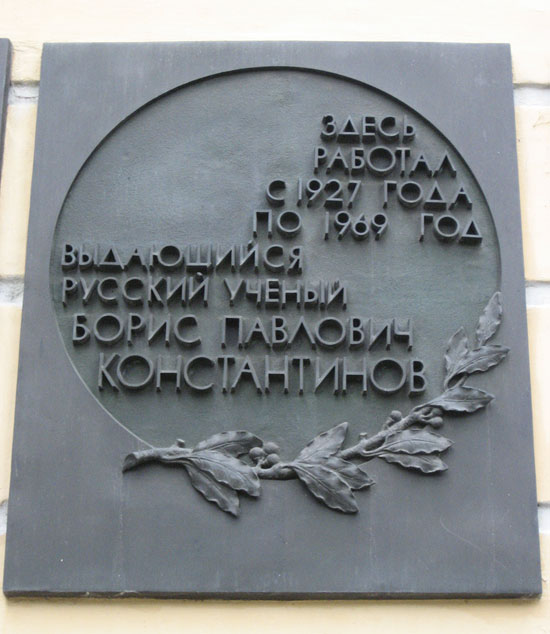 КОНСТАНТИНОВ Борис Павлович (6.VII.1910 - 9.VII.1969) — советский физик академик (1960, чл.-кор 1953), вице-президент (с 1967). Р. в Петербурге. Учился в Ленинградском политехническом ин-те. В 1926 - 30 и с 1940 работал в Ленинградском физико-техническом ин-те (с 1943 — зав.лабораторией, с 1963 — зав отделом, в 1957 - 67 — директор) в 1947 - 66 — также зав.кафедрой Политехнического ин-та. Канд. физ.-мат наук (1942, по материалам работы в области акустики для нужд противовоздушной обороны). Д-р физ.-мат наук (1943, "О гидродинамическом звукообразовании и распространении звука в ограниченной среде").