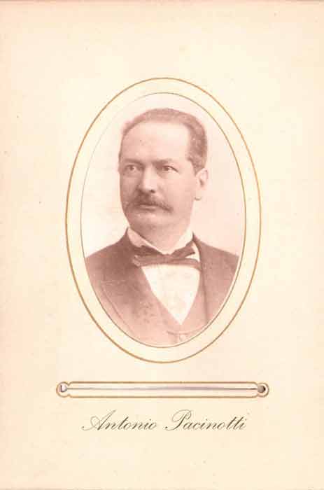 ПАЧИНОТТИ Антонио (Pacinotti Antonio) (17.VI.1841 - 24.III.1912) – итальянский физик и изобретатель, член Академии деи Линчеи (1898). Р. в Пизе. Окончил Пизанский ун-т (1861). В 1861 - 64 преподавал во Флоренции, в 1864 - 72 – профессор Королевского технологического ин-та в Болонье, в 1873 - 81 – ун-та в Кальяри, с 1882 – Пизанского ун-та.